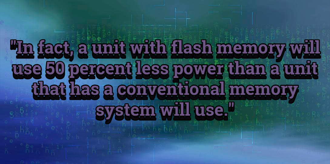Flash drives have no mechanical parts that move around, so they automatically consume less power than a conventional memory unit. In fact, a unit with flash memory will use 50 percent less power than a unit that has a conventional memory system will use. Additionally, flash drives provide unlimited access to files. Flash units have no limitations on them, so they can find files milliseconds faster than units that do not have flash can.